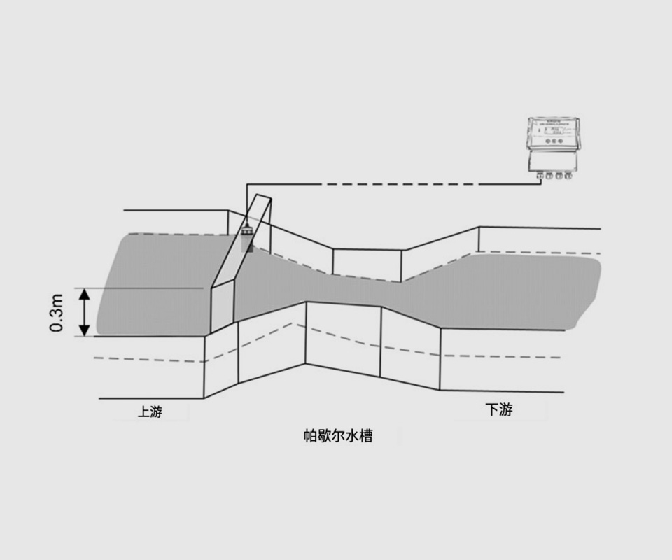 對(duì)于巴歇爾水槽,探頭應(yīng)安裝在距喉部2/3收縮的位置。